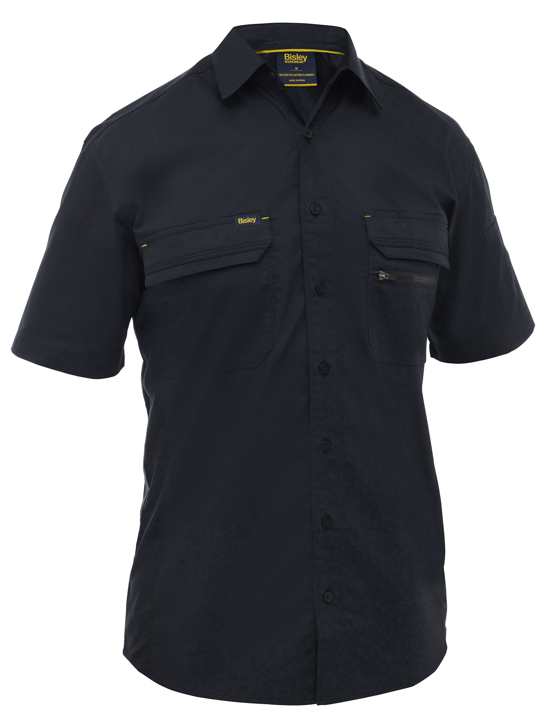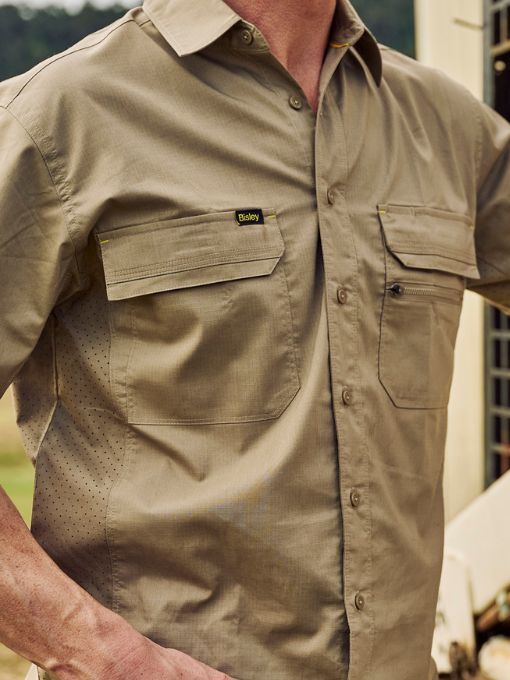 - Bisley X Airflow™ ventilation at multiple heat stress areas, including laser perforated self fabric panels on side of body and underarms