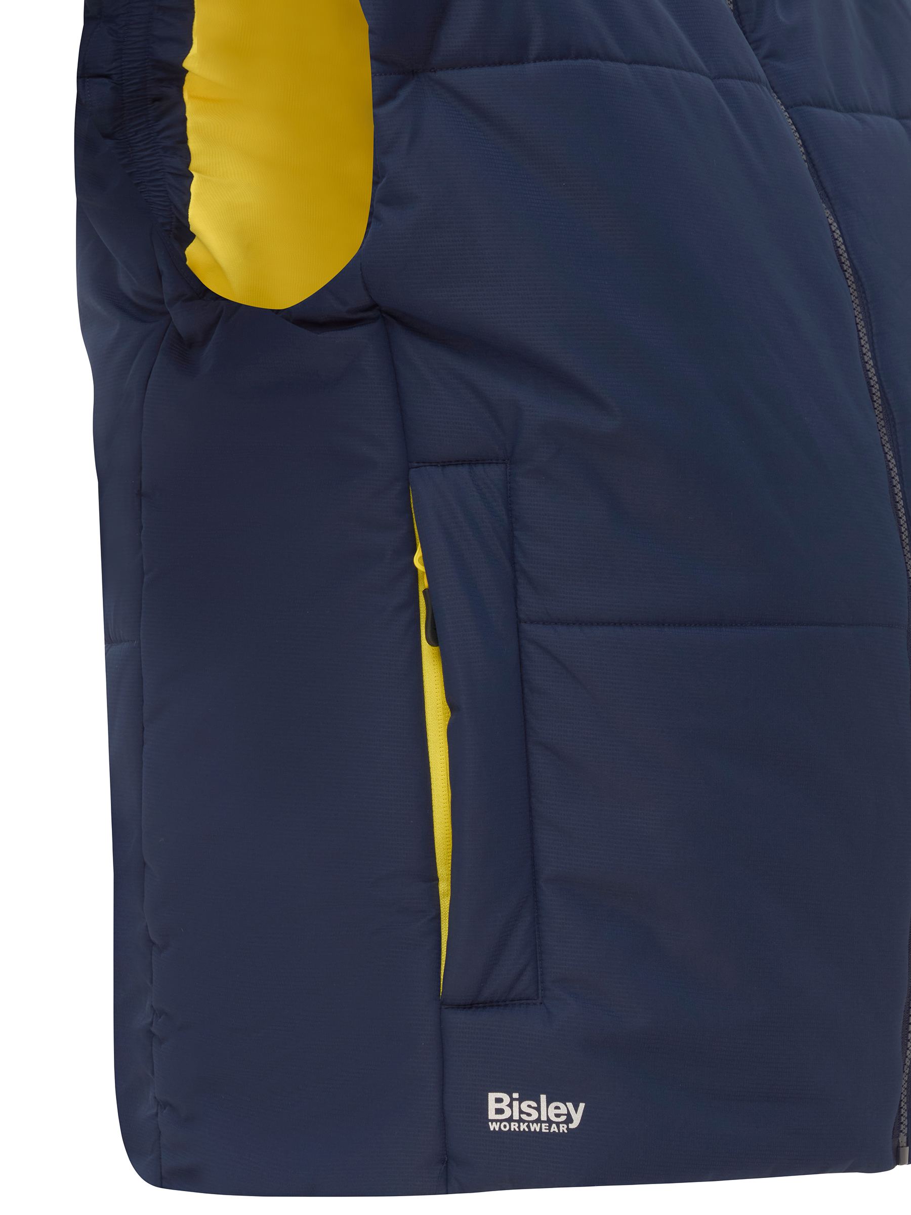 - Welt waist pockets with contrast yellow coil zipper